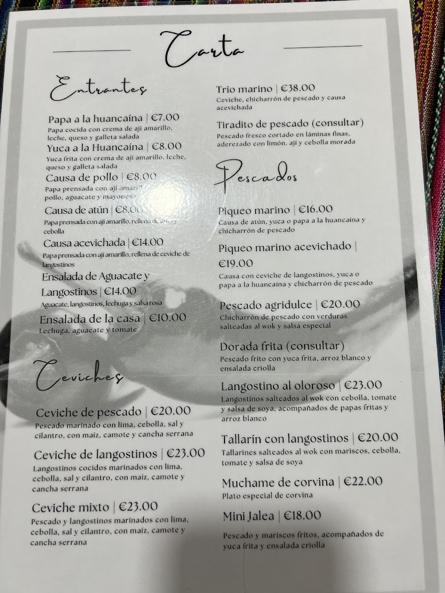 Welcome to ECHA MARIO, a culinary gem nestled in the heart of Jerez de la Frontera, Cádiz, Spain. This vibrant restaurant, located at C. Gibraleón, 3C, has quickly gained a reputation for its authentic Peruvian cuisine and warm atmosphere. Customers rave about the outstanding service, with friendly staff and the chef personally engaging with diners, enhancing the overall experience.